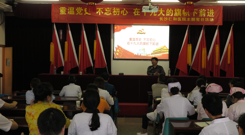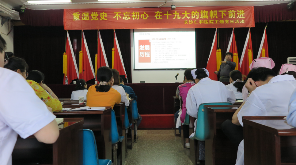 2019年4月26日下午,第一会所 党支部有幸请到雨花区卫健委龚文波书记给全体党员上了一堂生动的党课。党课主题围绕党的发展历程,党的三大作风,党的三大法宝,党的三大灵魂几个方面重温了党史,并以中国前三十年,后三十年的历史成就,分三个阶段:新民主主义革命时期(1919-1949),社会主义革命时期(1949-1978),改革开放和社会主义建设时期(1978年至今)重温了中国共产党革命历程和理论指导思想。全体党员感受深刻,表示要不忘初心,牢记使命,立足本职,在习近平中国特色社会主义新思想指导下,在党的十九大旗帜下,砥砺前行,为实现中华民族伟大复兴的中国梦而不懈奋斗。