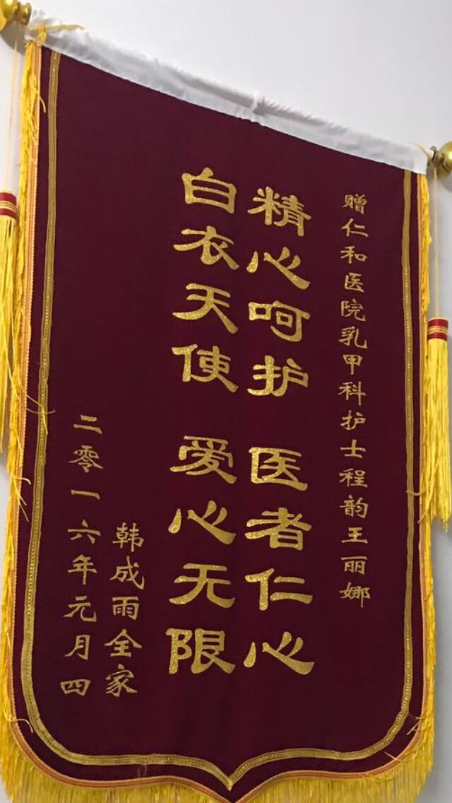 2、乳甲科护士程韵王丽娜收到锦旗一面